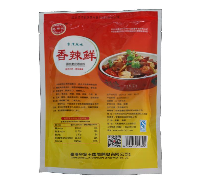 香辣鲜采用台湾传统配方,结合大陆香辣食品技术,精选天然香辛料,提取浓缩精致而成。香味浓郁,辣度适中,鲜美可口,清爽怡人。