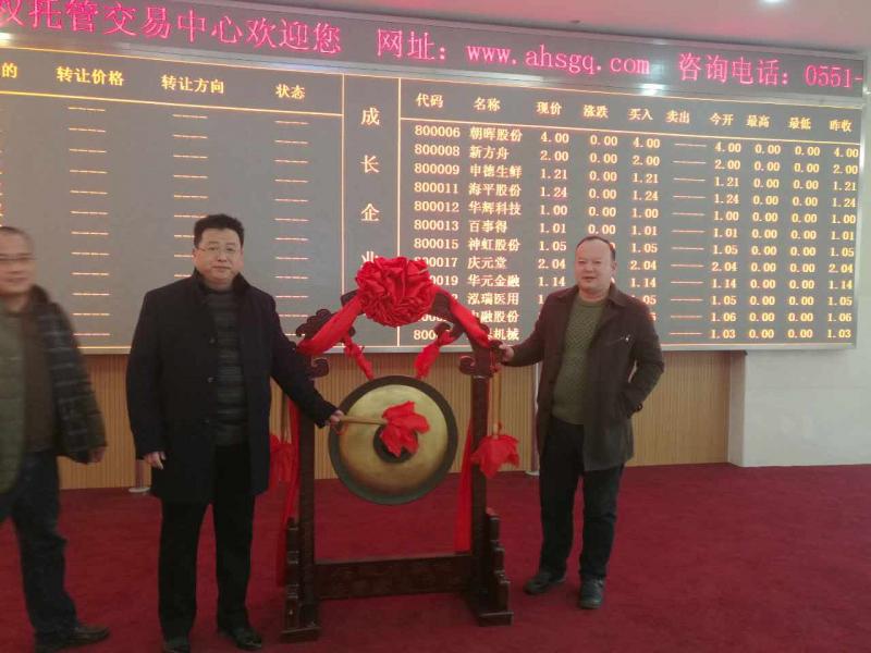 2016年12月29日,安徽名珍食品有限公司在安徽省股权托管交易中心2016年科技板太和专场挂牌仪式。在合肥高新区科技创新服务中心一楼隆重举行,来自太和县的20家企业集体登陆安徽省区域性股权交易市场。国元证券股份有限公司总裁俞仕新、阜阳市领导、太和县县委领导出席仪式,20家挂牌企业负责人及所在地政府职能部门代表、推荐商会员代表和新闻媒体记者参加会议.